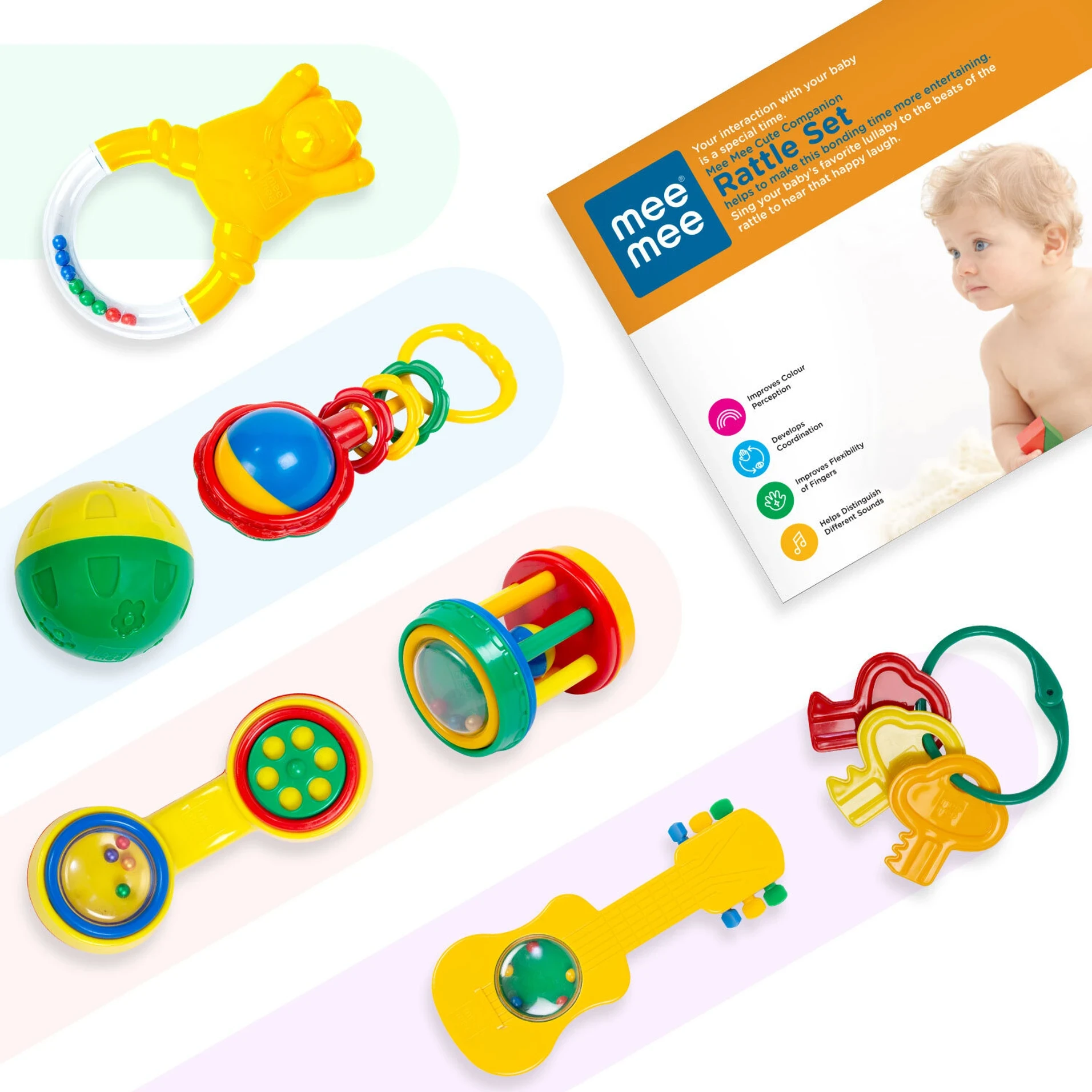 Whether you are a parent looking to stock your nursery or searching for the perfect Baby Shower gift, the MeeMee 7-Piece Rattle Set comes in an attractive, gift-ready presentation that promises hours of giggles and growth.