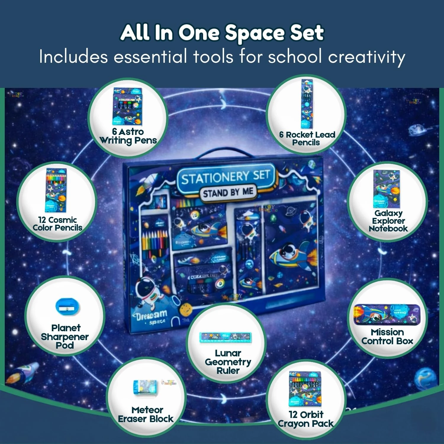 Ignite a universe of creativity with the Toy Imagine Dream Space Kit. This 41-piece collection is more than just school supplies; it’s a galactic adventure for every young dreamer. Specifically curated for girls who love to write, draw, and organize, this all-in-one set combines magical "Dream Space" aesthetics with high-utility tools for the classroom and beyond.
