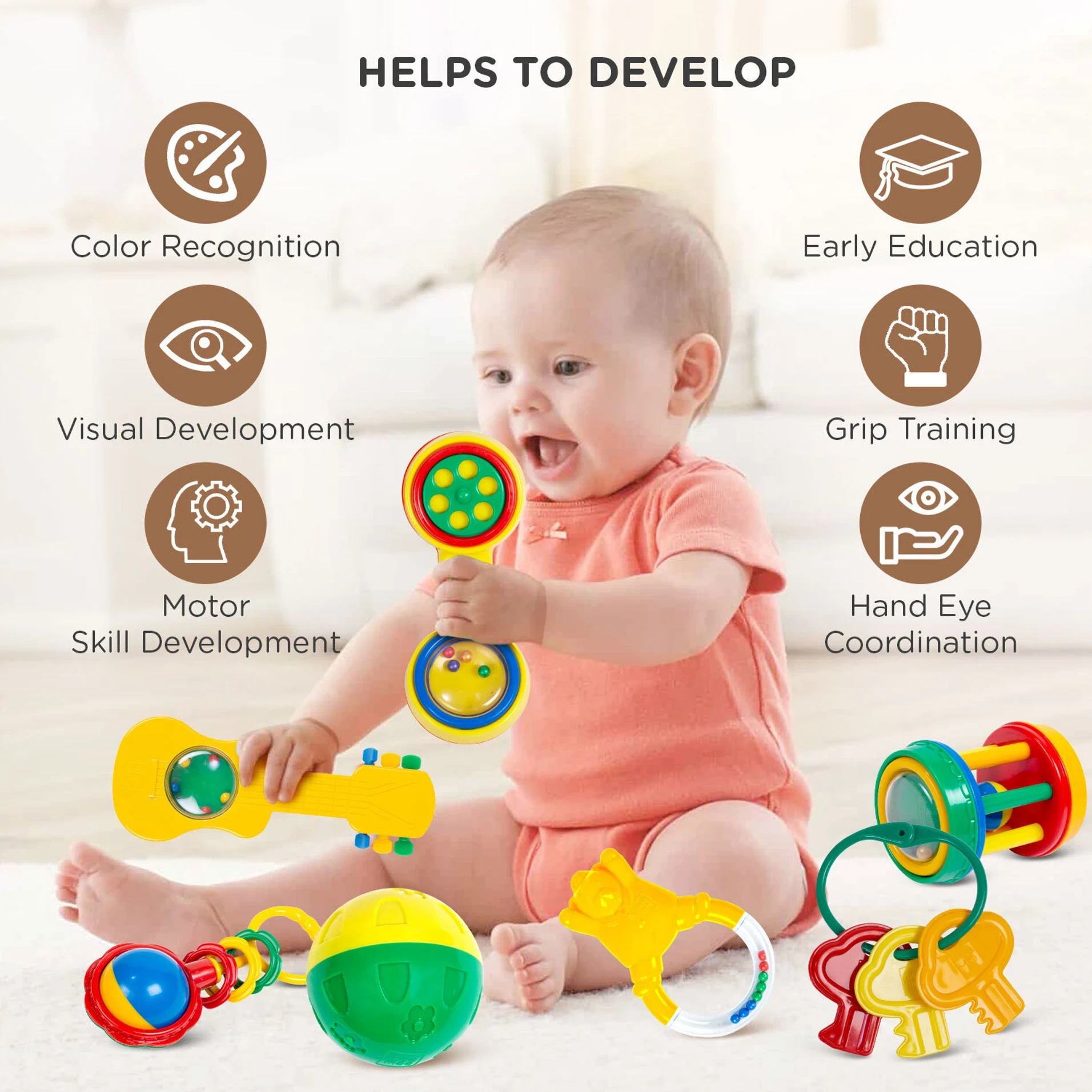 - Ergonomic Design: Engineered specifically for tiny hands, these rattles help improve fine motor skills and hand-eye coordination as your baby learns to grasp, shake, and release.