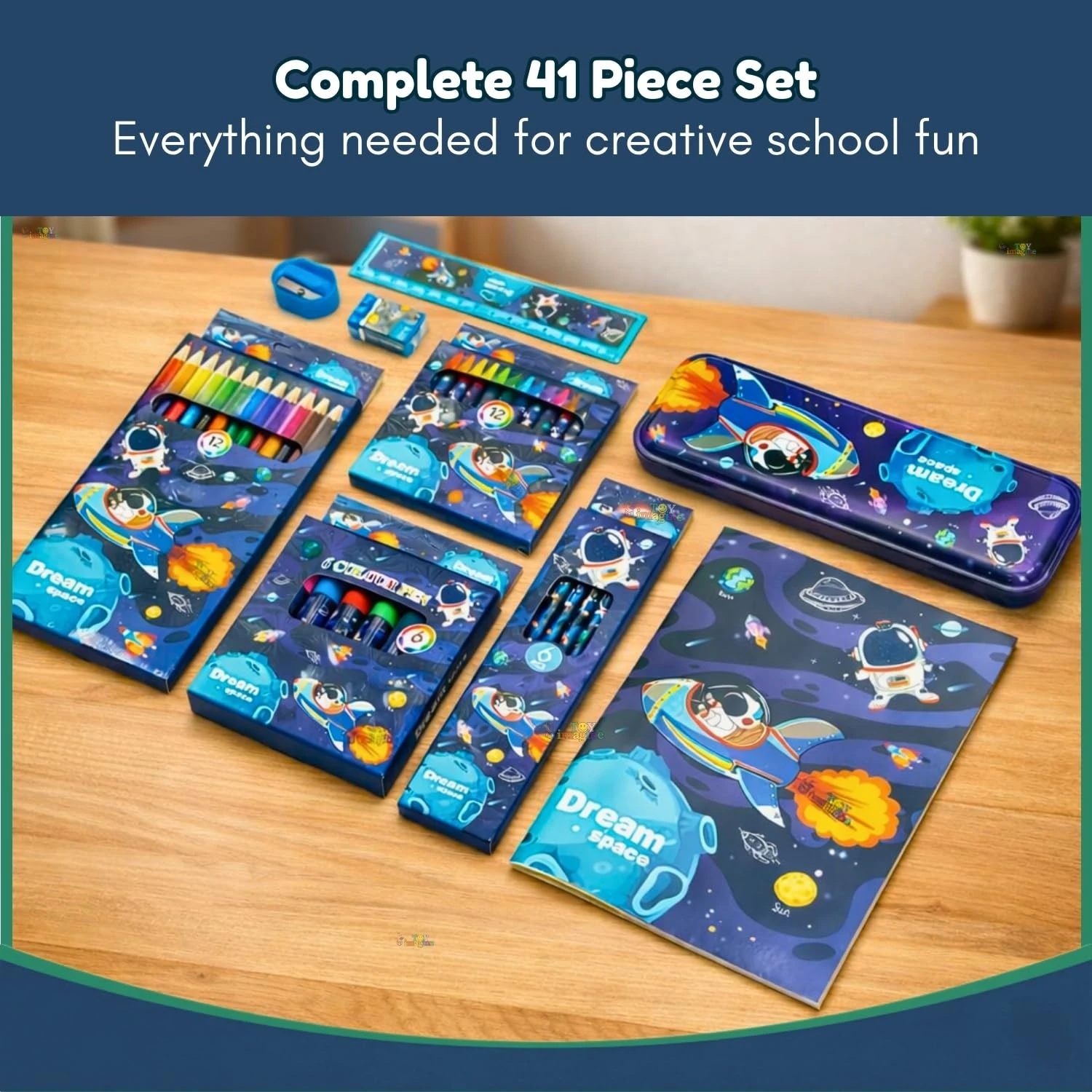 The Toy Imagine Dream Space Kit eliminates the hassle of buying separate supplies. By providing a coordinated, 41-item set, it encourages girls to take ownership of their "creative hub" and stay organized. Whether she's mapping out a science project or writing a story about the stars, this kit provides the professional-quality tools she needs to let her imagination soar.